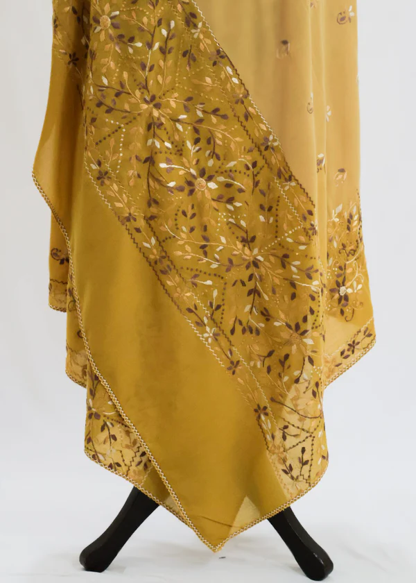 Where timeless craftsmanship meets luxurious design, this Pashtush shawl is a true celebration of heritage and elegance. Handwoven from 100% Grade A Cashmere in the northern regions, its ultra-soft texture and refined detailing reflect generations of artisanal mastery. Intricate embroidery by skilled hands adds a layer of charm, turning each fold into a graceful expression of style and warmth. A perfect companion for winter, designed to elevate your wardrobe with sophistication and tradition.
