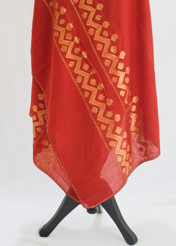 Elevate your summer look with the Swati Phulkaar D Shawl, a stunning piece of hand embroidery showcasing the beauty of traditional Swati Phulkari.